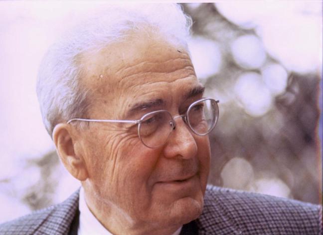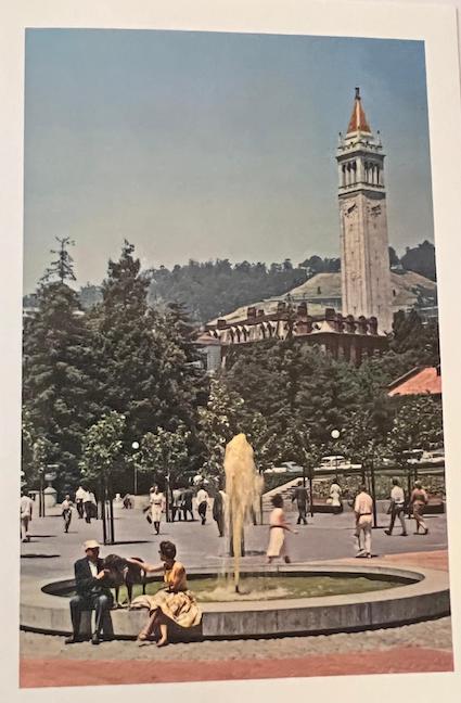 History Professor Raymond James Sontag, a student favorite, with a bench honoring him to the right of Sather Gate